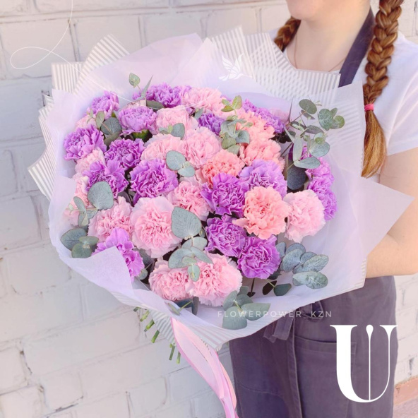 Нежный оттенки сортовых диантусов и эвкалипта. Такой букет точно вызовет Wow восторг
