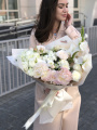 Монобукет из 11 белых тюльпанов в дизайнерской упаковке