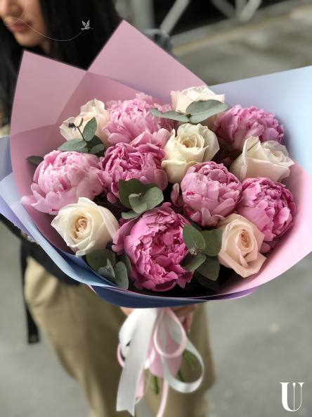 Пионы, розы, эвкалипт