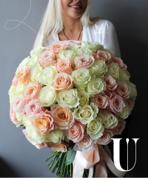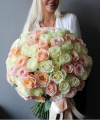 Роскошный букет в розовых тонах из роз, орхидеи и альстромерий в розовой упаковке