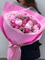 Стильный букет в розовой дизайнерской упаковке