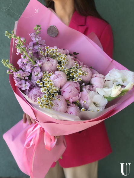 Букет из 27 бело-розовых диантусов в розовой упаковке
