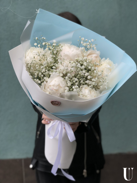 Монобукет из 11 белых тюльпанов в дизайнерской упаковке