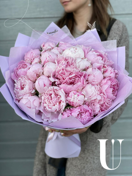 Букет из 27 бело-розовых диантусов в розовой упаковке