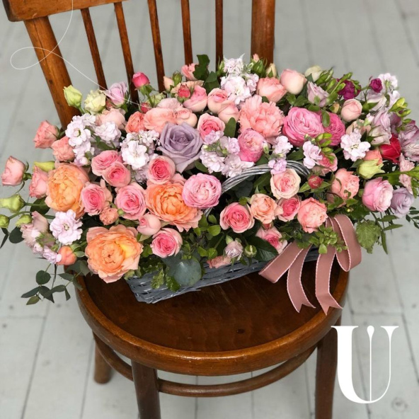 Пионовидные Розы 25 шт , кустовые Розы 9 веток, пучок зелени , матиолла 7 веток