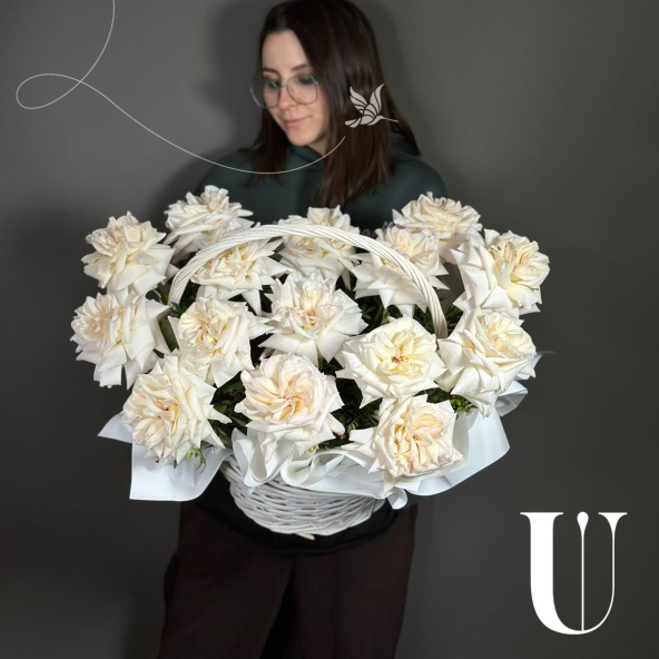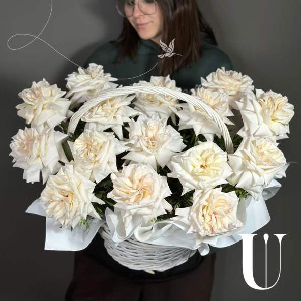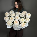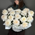 Композиция в розовых тонах из пионов и диантусов в корзине