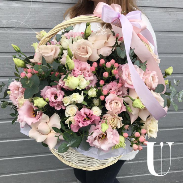 - Воздушная композиция в кремовых оттенках, в стильной плетенной корзине!