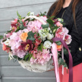 - Летний палисадник в одной корзине с нотками экзотики,ароматнейшие розы,невероятная маттиола, изумительная альстромерия и воздушная гортензия в сочетании экзотической,столь же ароматной орхидеи❤️