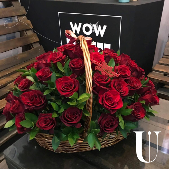 51 Эквадорская роза премиум класса в огромной корзине с зеленью! Любите дарить стойкие цветы?