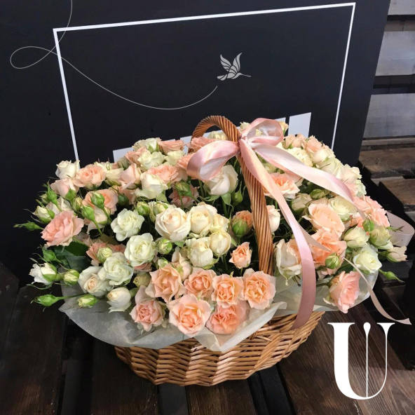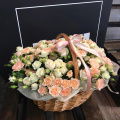 Невероятное цветочное облако кружевных кустовых роз в стильной плетеной корзине! Нежная цветовая гамма и воздушность такого цветочного презента несомненно вскружат голову самой очаровательной получательнице! Дарите близких тепло и любовь , а мы вам с радостью в этом поможем!