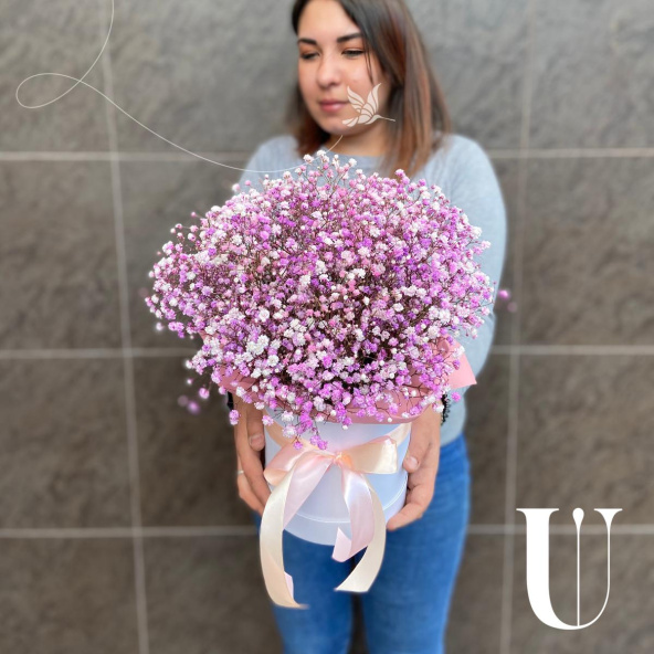 Композиция из воздушной гипсофилы в шляпной коробке для Вас