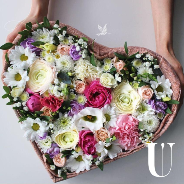 Цветы в коробке "Цветочное сердце"