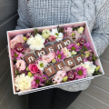 - Нежнейшая романтичная цветочная композиция в тематической коробке с вкуснейшим шоколадом ручной работы
