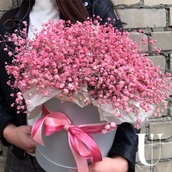 "Кружевное очарование" гипсофила в шляпной коробке - Самая популярная композиция этой осени