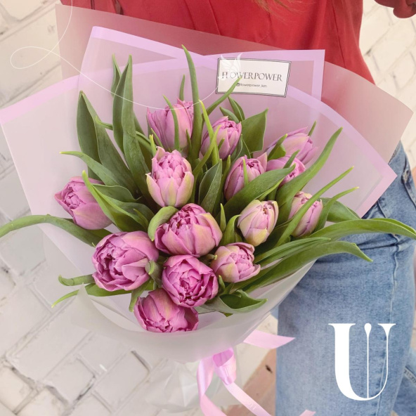 Пионовидные тюльпаны в магическом сиреневом цвете. Многослойные тюльпаны обладают потрясающей стойкостью, а бутоны при раскрытии увеличиваются вдвое
