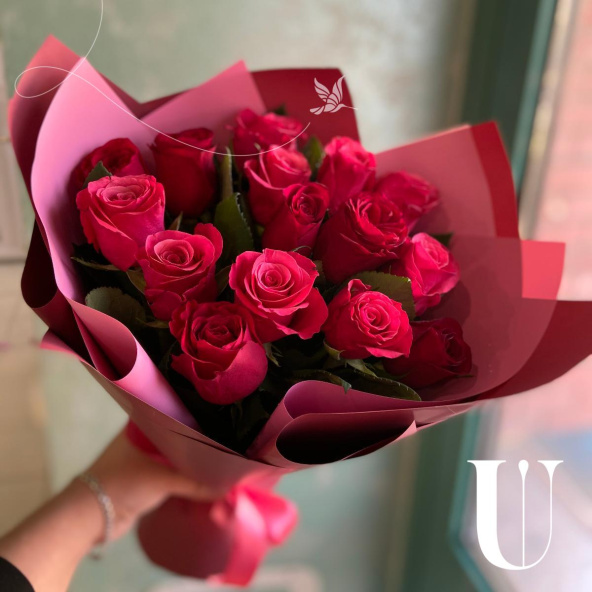 Монобукет из 7 роз Эксплорер в дизайнерской упаковке