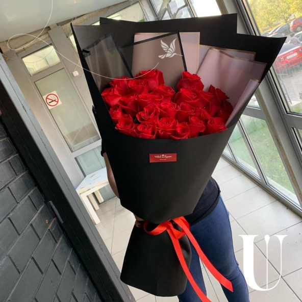 Монобукет из 7 роз Эксплорер в дизайнерской упаковке