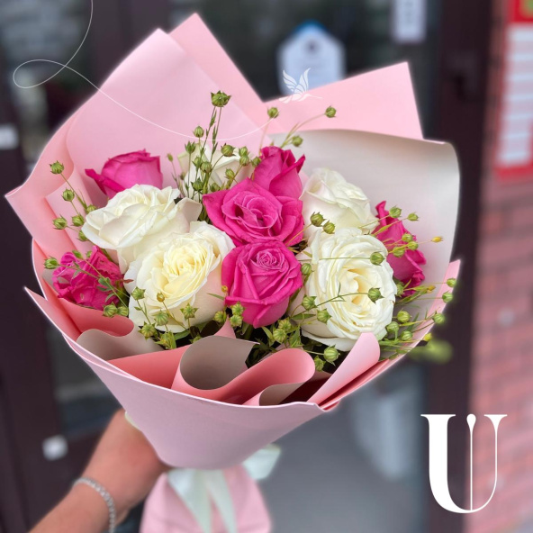 Букет из 9 роз и сухоцветов в упаковке для Вас