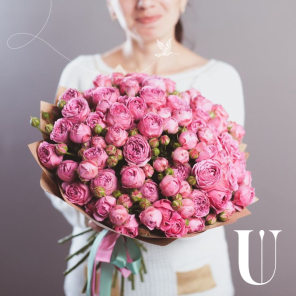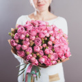 Букет из белых кустовых хризантем в стильной розовой упаковке