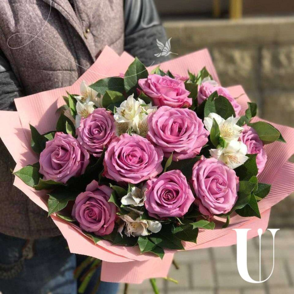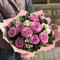 Монобукет из 7 роз Эксплорер в дизайнерской упаковке