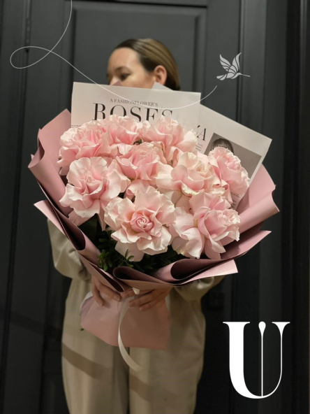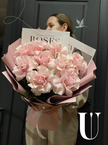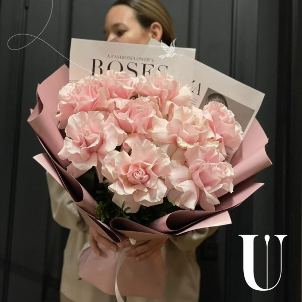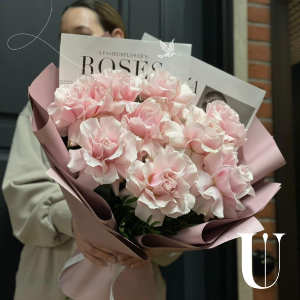 Монобукет из 7 роз Эксплорер в дизайнерской упаковке