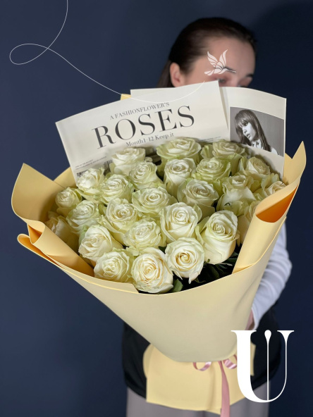 Роза Мондиаль, Эквадор, белая, 60 см. - 25 шт