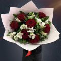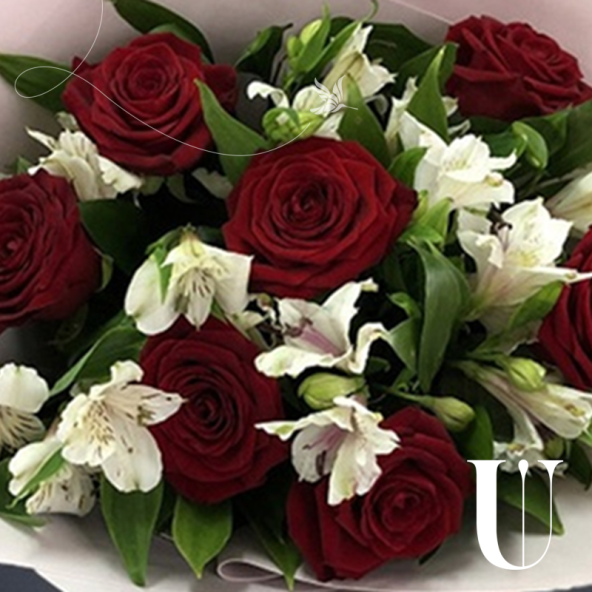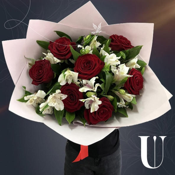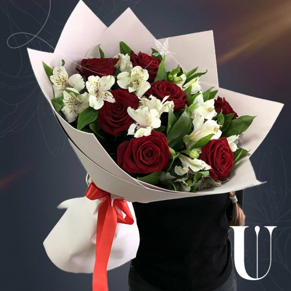 Сборный букет "Ася" из красных роз и белой альстромерии в матовой пленке с атласной лентой - это стильный и изысканный подарок, который подойдет для любого повода. В составе букета 15 цветов - 7 красных роз и 8 белых альстромерий. Красные Эквадорские розы - это высококачественные цветы, которые известны своими насыщенными оттенками и приятным ароматом, который долго будет радовать вас и ваших близких. Альстромерии в составе букета известны своей стойкостью и долгим сроком жизни, а также визуальной легкостью, свежестью и нежностью.
