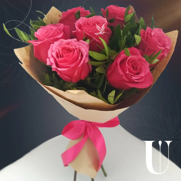 Букет "Фрида" из розовых роз с зеленью фисташки в крафте с атласной лентой - это стильный и изысканный подарок, который подойдет для любого повода. Букет включает в себя 7 розовых Эквадорских роз - высококачественных цветов, которые известны своими насыщенными оттенками и приятным ароматом, который долго будет радовать вас и ваших близких. Зелень фисташки добавляет свежести и завершает нежный образ композиции