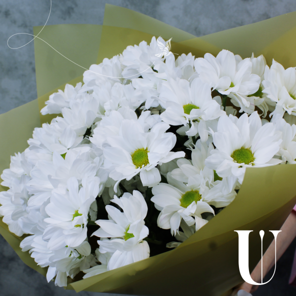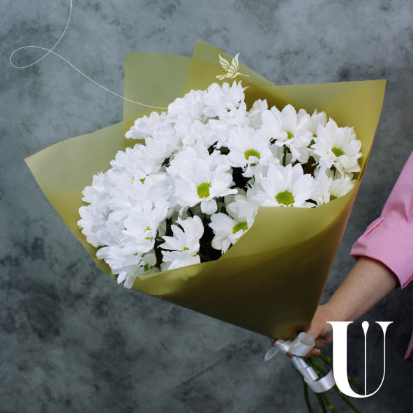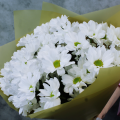 Букет из 5 белых кустовых ромашковых хризантем в матовой пленке с атласной лентой - это стильный и элегантный подарок для любого повода. Белые кустовые хризантемы, собранные в монобукет, украсят любой праздник или торжественное событие.