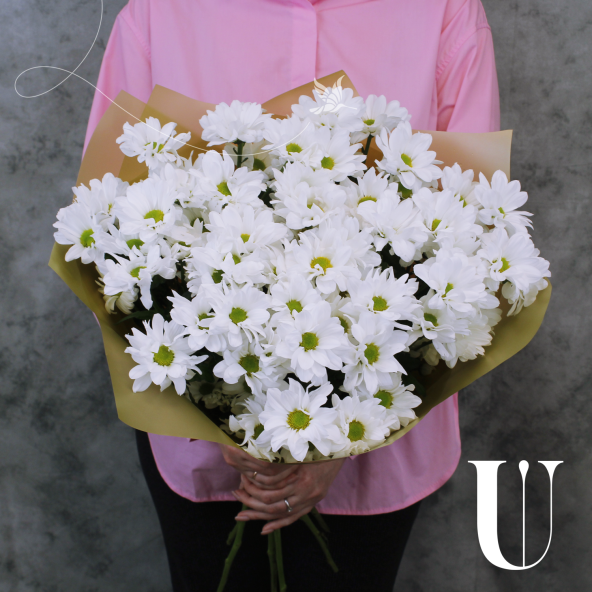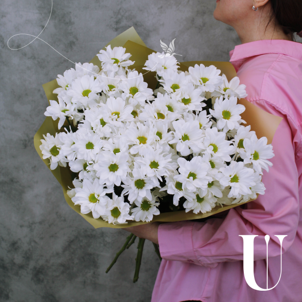 Монобукет из 9 белых кустовых ромашковых хризантем в матовой пленке с атласной лентой — это стильный и элегантный подарок для любого повода. Белые кустовые хризантемы в букете создают неповторимую нежную композицию, которая придется по вкусу даже самому искушенному получателю.