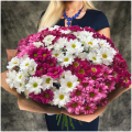 Букет из 25 кустовых хризантем Баккарди микс в крафте с атласной лентой — это стильный и элегантный подарок для любого повода. Разноцветные кустовые хризантемы белых, розовых и красных оттенков в букете создают неповторимую яркую и нежную композицию, которая придется по вкусу даже самому искушенному получателю.