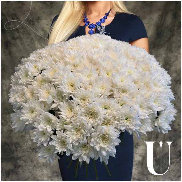 Классический букет из 35 белых кустовых хризантем с широкой атласной лентой - это стильный и элегантный подарок для любого повода. Белые кустовые хризантемы в букете создают неповторимую нежную композицию, которая придется по вкусу даже самому искушенному получателю.