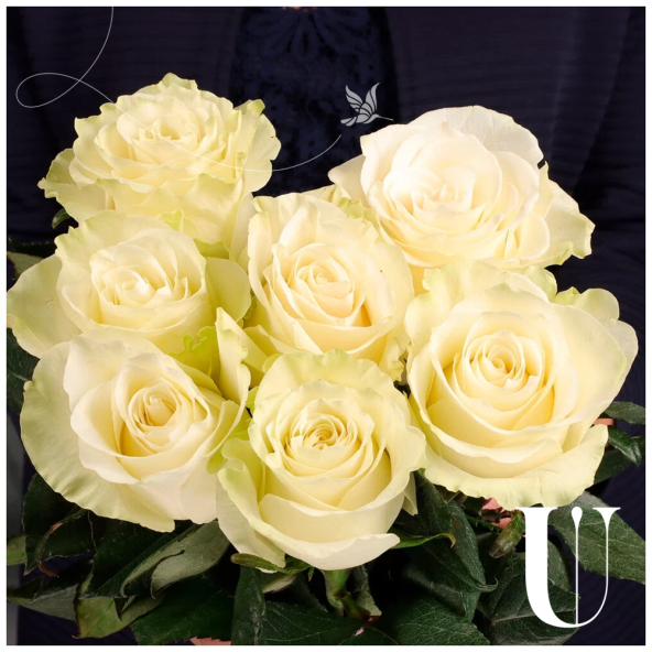 Состав как на фото - Роза Мондиаль, Эквадор, белая, 60 см. - 7 шт