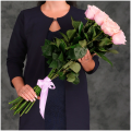 Букет из 11 нежно-розовых Эквадорских роз 60 см с атласной лентой - это стильный и элегантный подарок, который подойдет для любого повода. В составе букета розы сорта Пинк Мондиаль – это высококачественные цветы, которые известны своим насыщенным розовым цветом и приятным ароматом, который будет радовать вас и ваших близких.