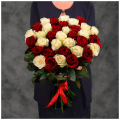 Букет из 35 красных и белых Эквадорских роз микс 60 см с атласной лентой - это стильный и элегантный подарок, который подойдет для любого повода. В составе букета розы сорта Эксплорер и Мондиаль – это высококачественные цветы, которые известны своими насыщенными оттенками и приятным ароматом, который будет радовать вас и ваших близких.
