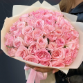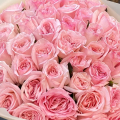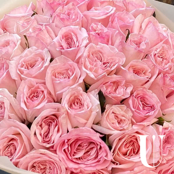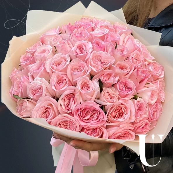 Монобукет из 51 пионовидной розы сорта Pink O'Hara в матовой пленке с атласной лентой - это изысканный и стильный подарок, который станет незабываемым сюрпризом для любого торжества или особого случая. Роскошные пионовидные розы сорта Pink O'Hara нежно-розового оттенка в составе букета обладают уникальной формой бутонов и незабываемым ароматом.