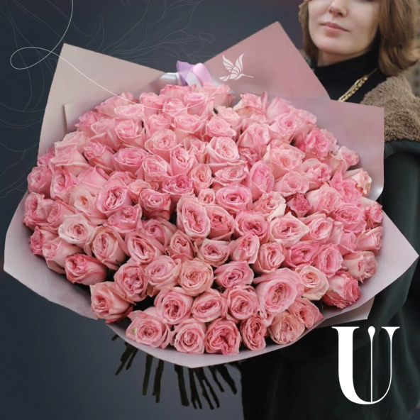 Монобукет из 101 пионовидной розы сорта Pink O'Hara в матовой пленке с атласной лентой - это изысканный и стильный подарок, который станет незабываемым сюрпризом для любого торжества или особого случая. Роскошные пионовидные розы сорта Pink O'Hara нежно-розового оттенка в составе букета обладают уникальной формой бутонов и незабываемым ароматом.