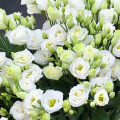 Букет из 51 белой эустомы с широкой атласной лентой - это стильный и изысканный подарок, который подойдет для любого повода. Эустома (лизиантус) - это нежный цветок, родом из Америки, напоминающий миниатюрную розу. Они очень стойкие и долго будут радовать получателя своей красотой и элегантностью.