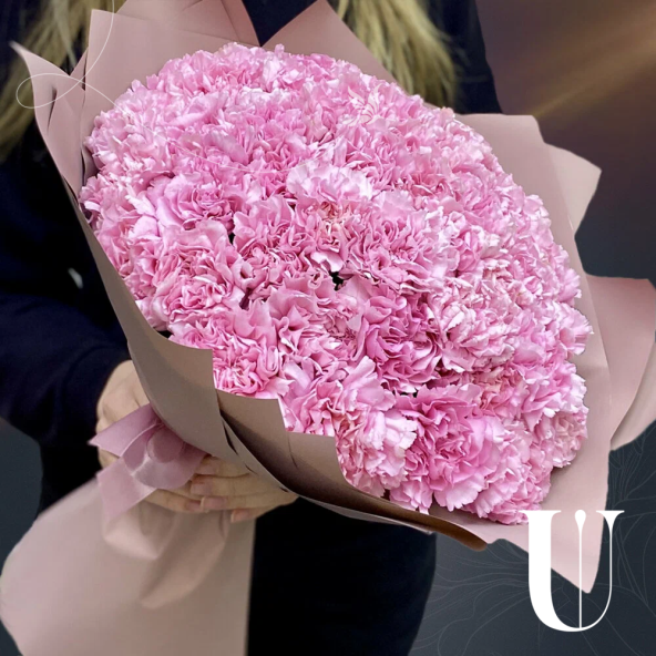 Выбирая монобукет из 51 розовой гвоздики, вы дарите знак благодарности и нежности, который, несомненно, будет оценен получателем.