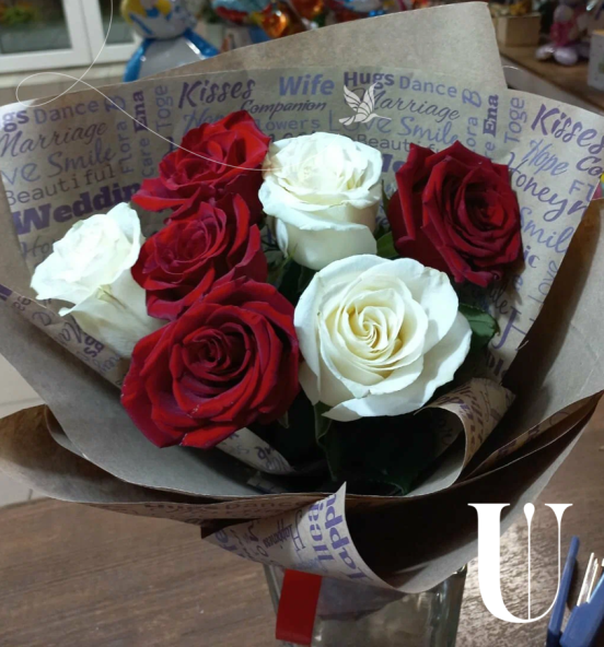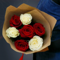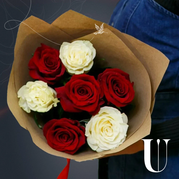 Классический монобукет из 7 роз микс в крафте с атласной лентой - это элегантный и стильный подарок, который станет отличным выбором для любого повода. В составе букета белые и красные Эквадорские розы - высококачественные цветы, которые известны своими насыщенными оттенками и приятным ароматом, который долго будет радовать Вас и Ваших близких.