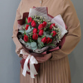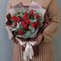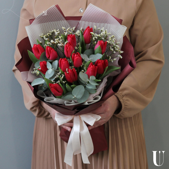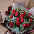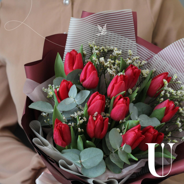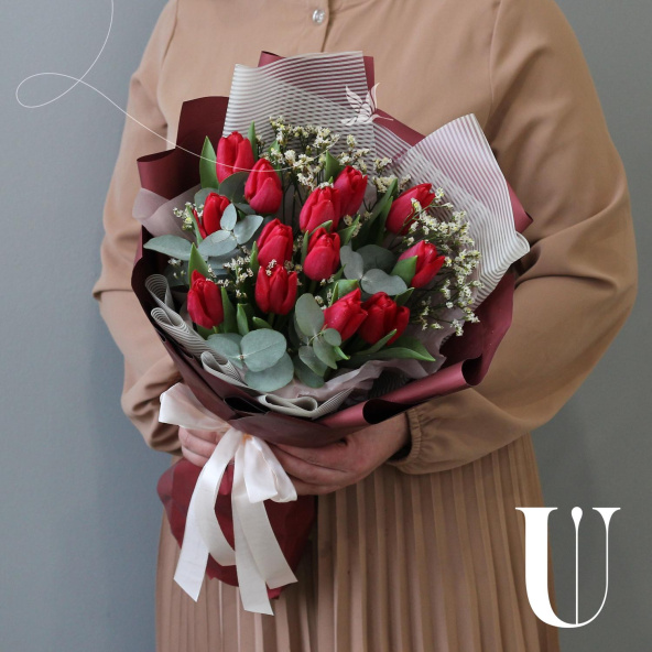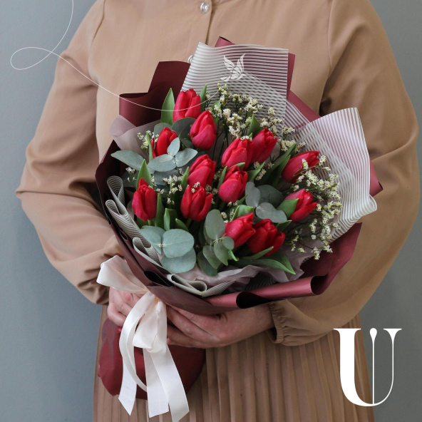 Монобукет из 11 белых тюльпанов в дизайнерской упаковке
