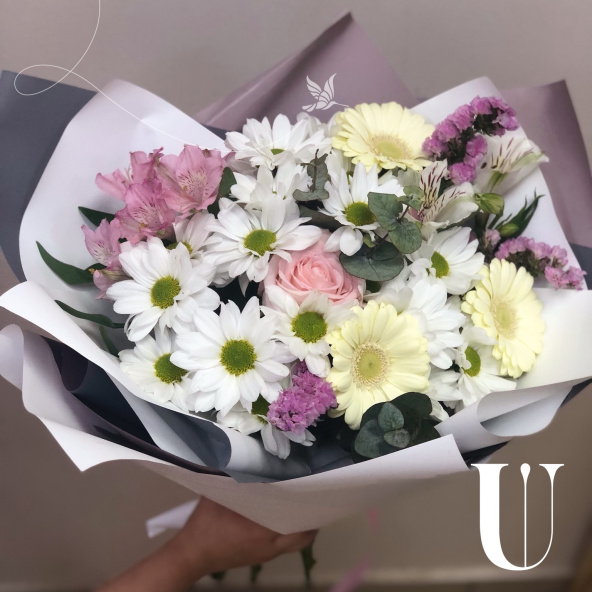 Действительно Нежный, Современный Букет с олицетворением Легкости, нотки Романтизма, Весны и Лета! Словно Ромашки улыбаются с полей!