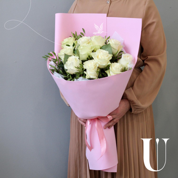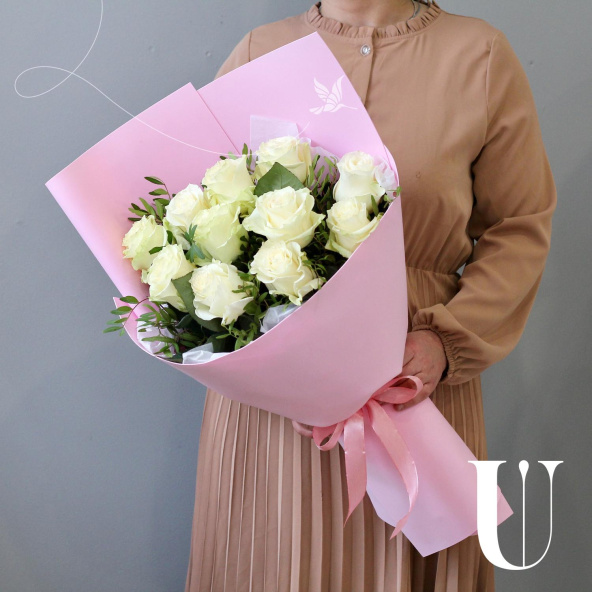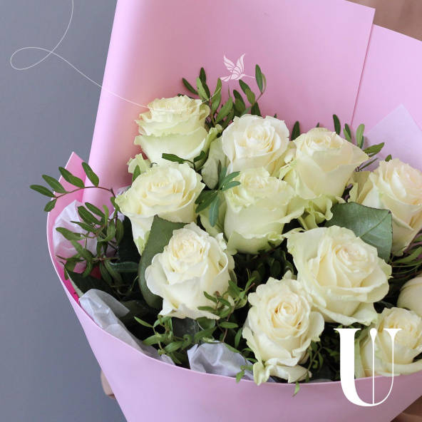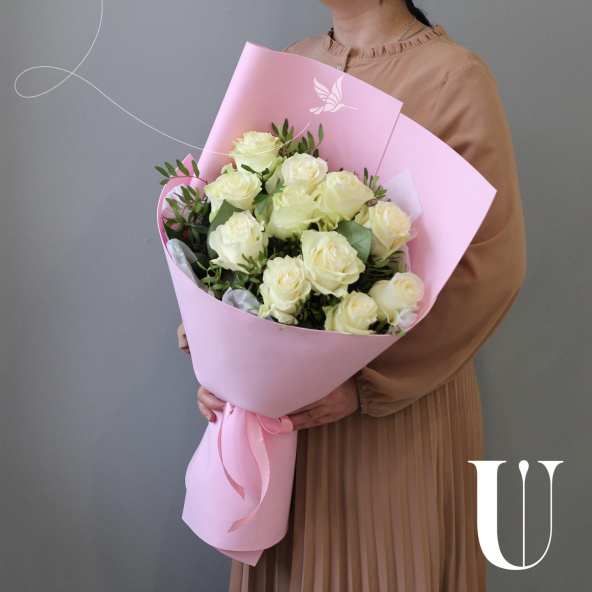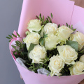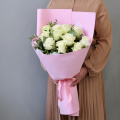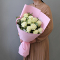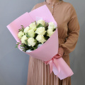 Букет из белых кустовых хризантем в стильной розовой упаковке
