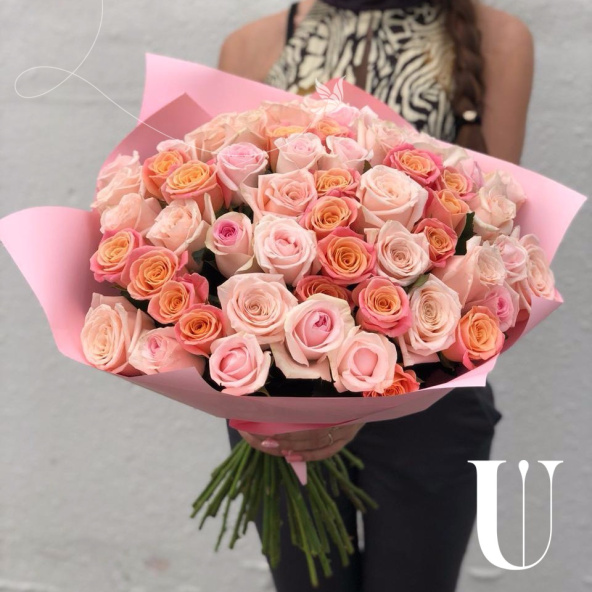 Роза россия 51 шт, пленка 3 листа, лента 2 шт