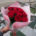 Очаровательный букет из 9 пышных, алых, кенийских роз в элегантной упаковке