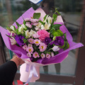 Белоснежная альстромерия вместе с нежной розой и лавандовыми сантини, яркая эустома и сочная хризантема..)))