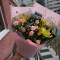 Очаровательный букет из изысканных орхидей, нежных кустовых роз и зелени..))