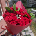 Шикарный букет из 25 красных ароматных роз, с добавлением гипсофилы и в стильной упаковке...))