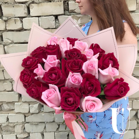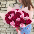 Яркий букет из 25 роз премиум-класса в стильной упаковке!