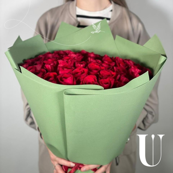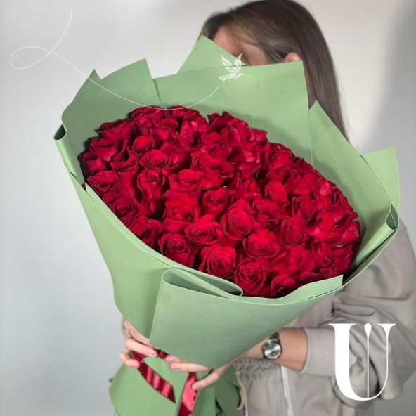 Букет великолепных классических красных роз — что может быть изысканнее и красноречивее. Такой букет равносилен признанию в любви, и даже больше
